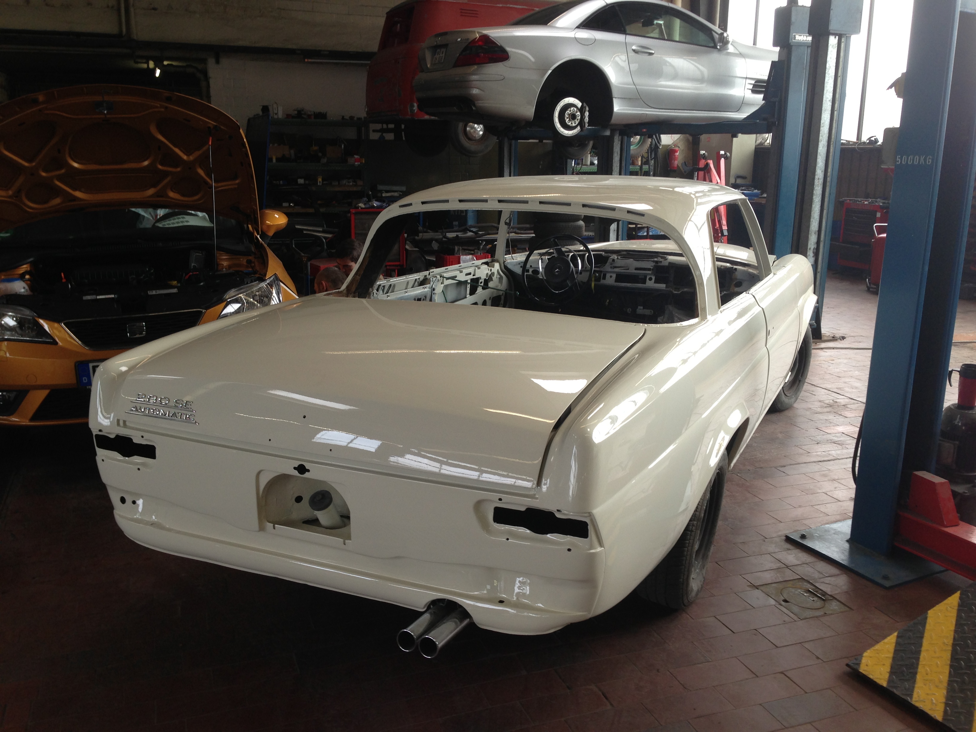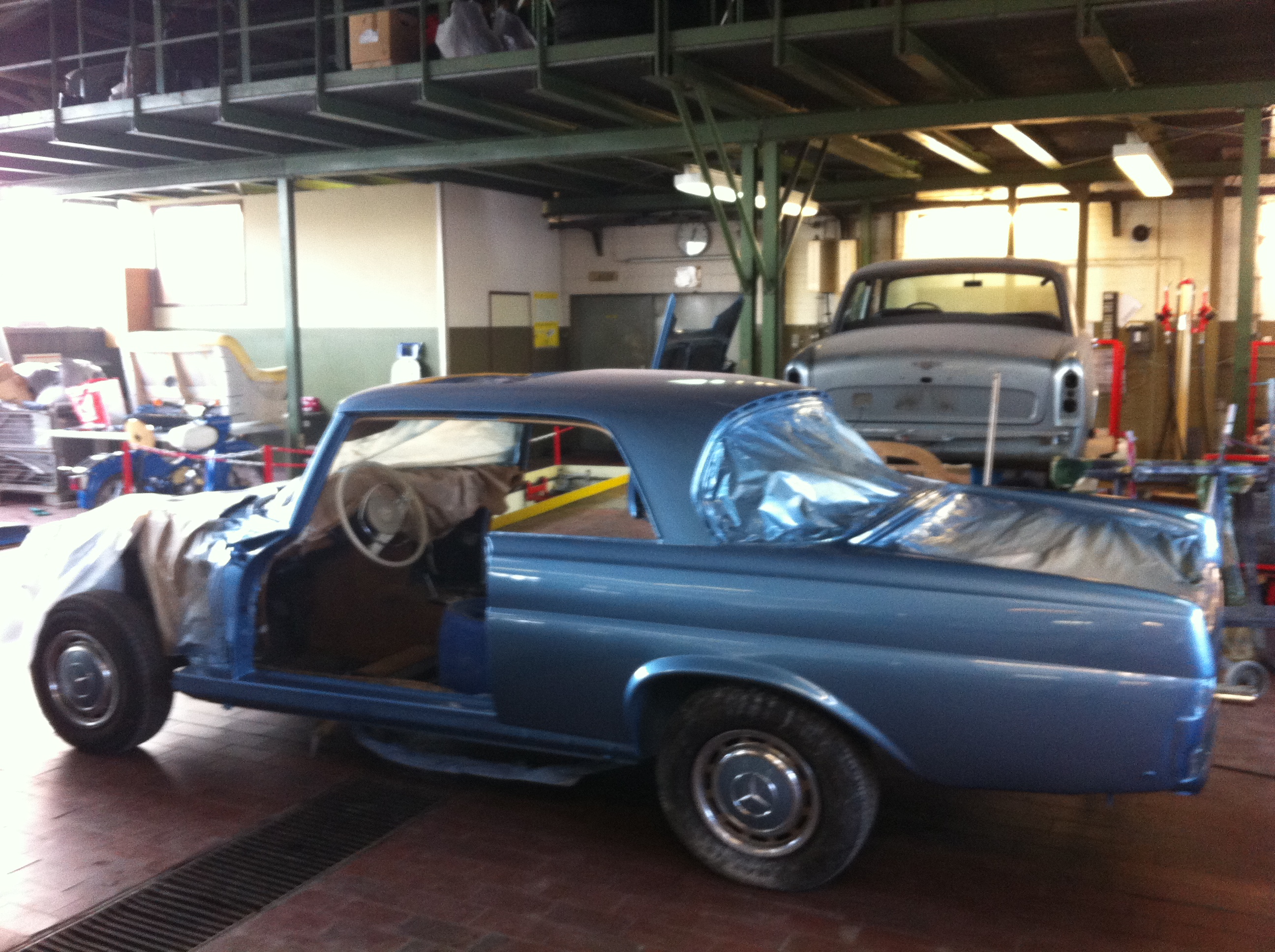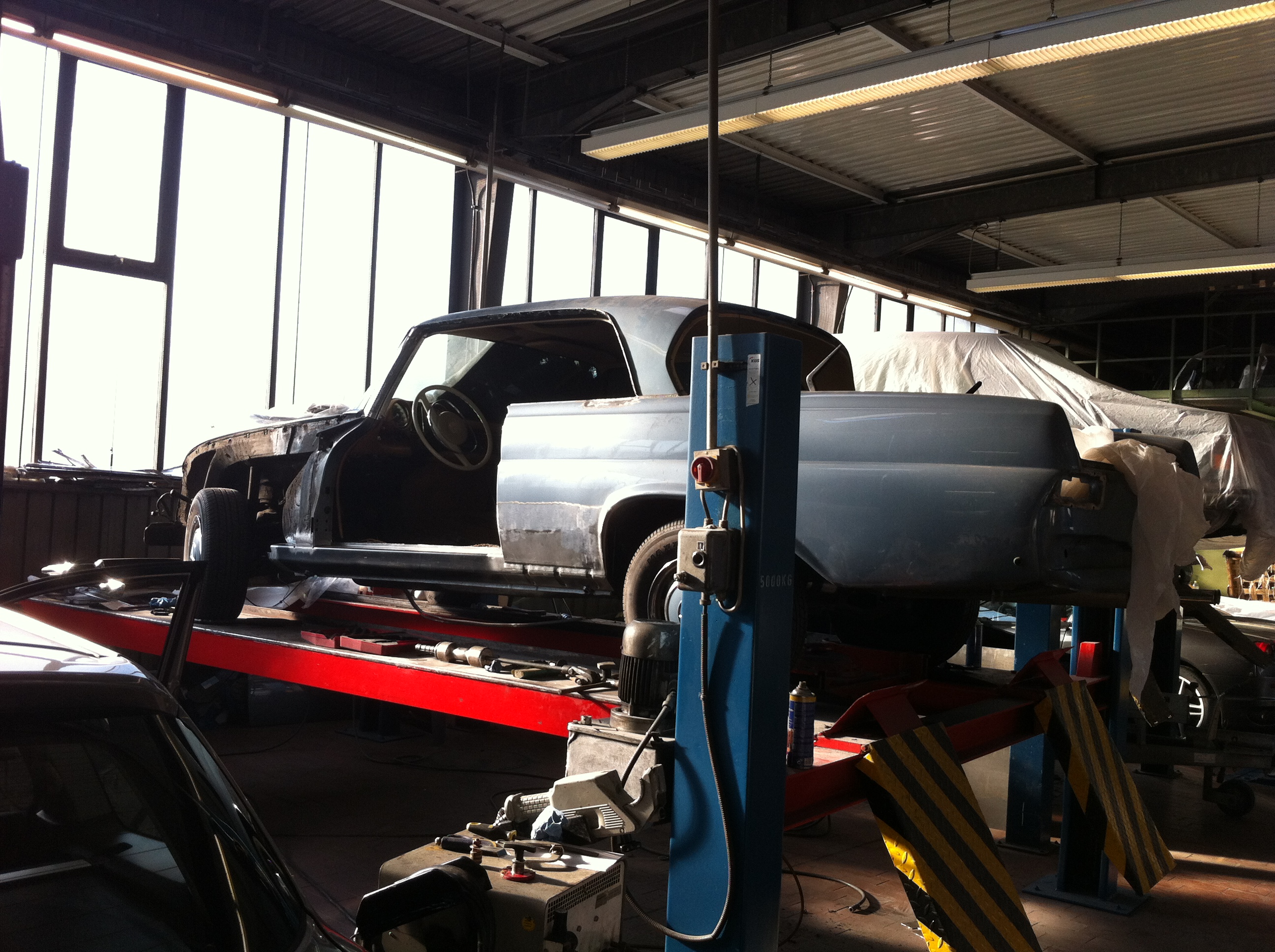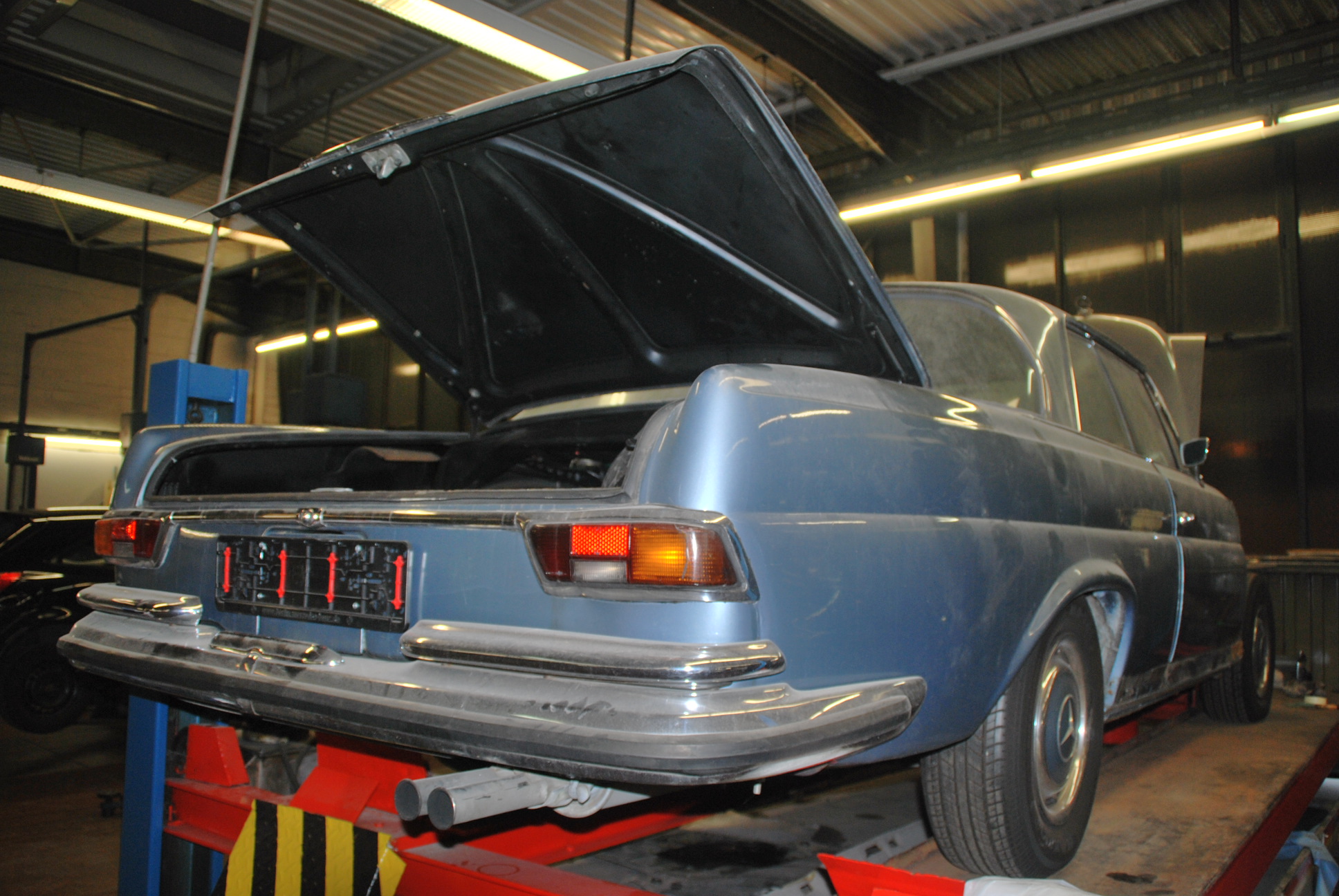 Hier sehen Sie Bilder einer kompletten Restauration eines Mercedes-Benz W111 in unserer Werkstatt:
