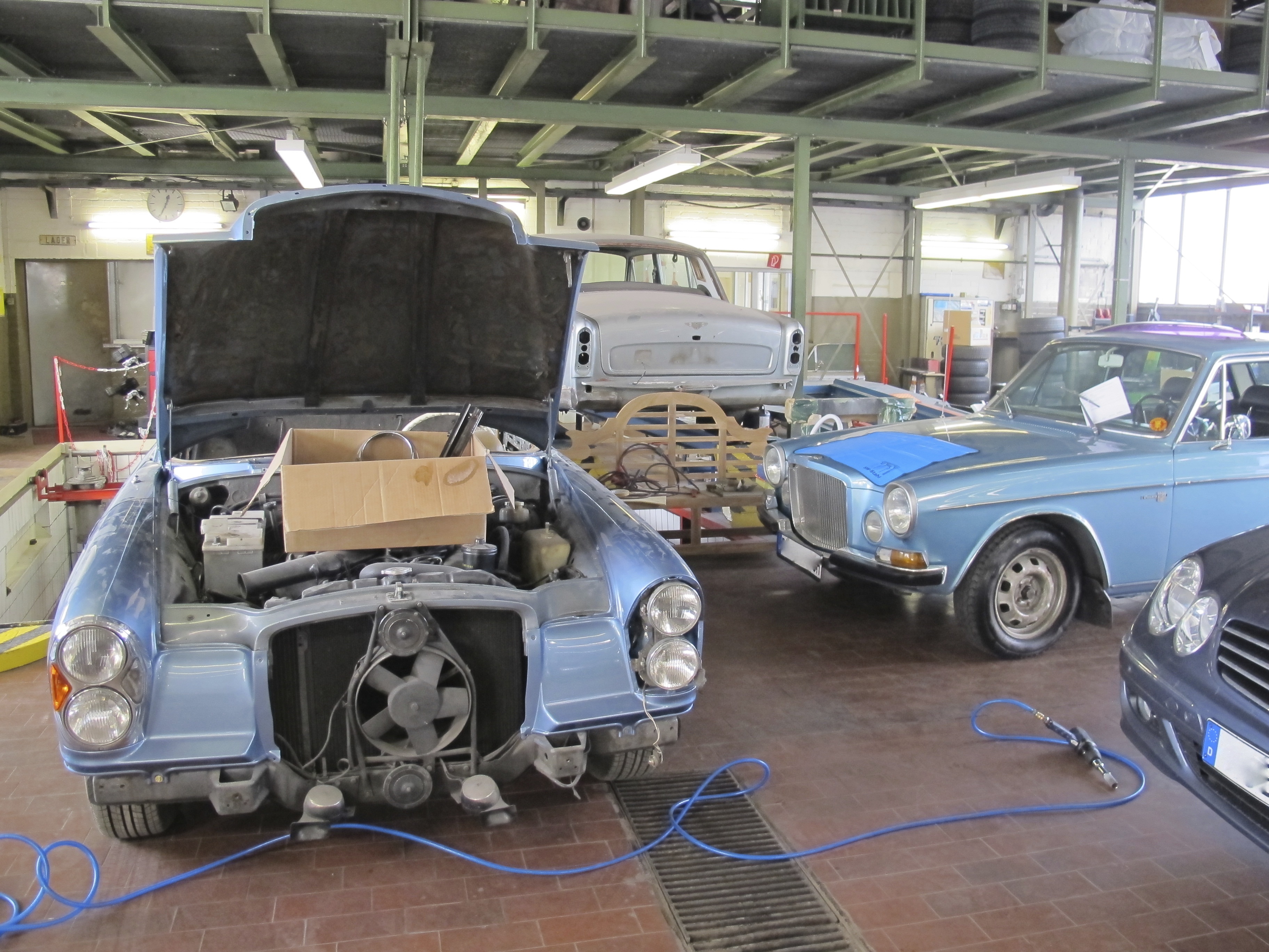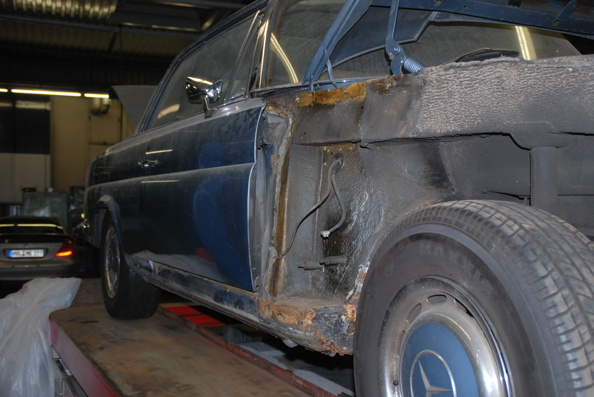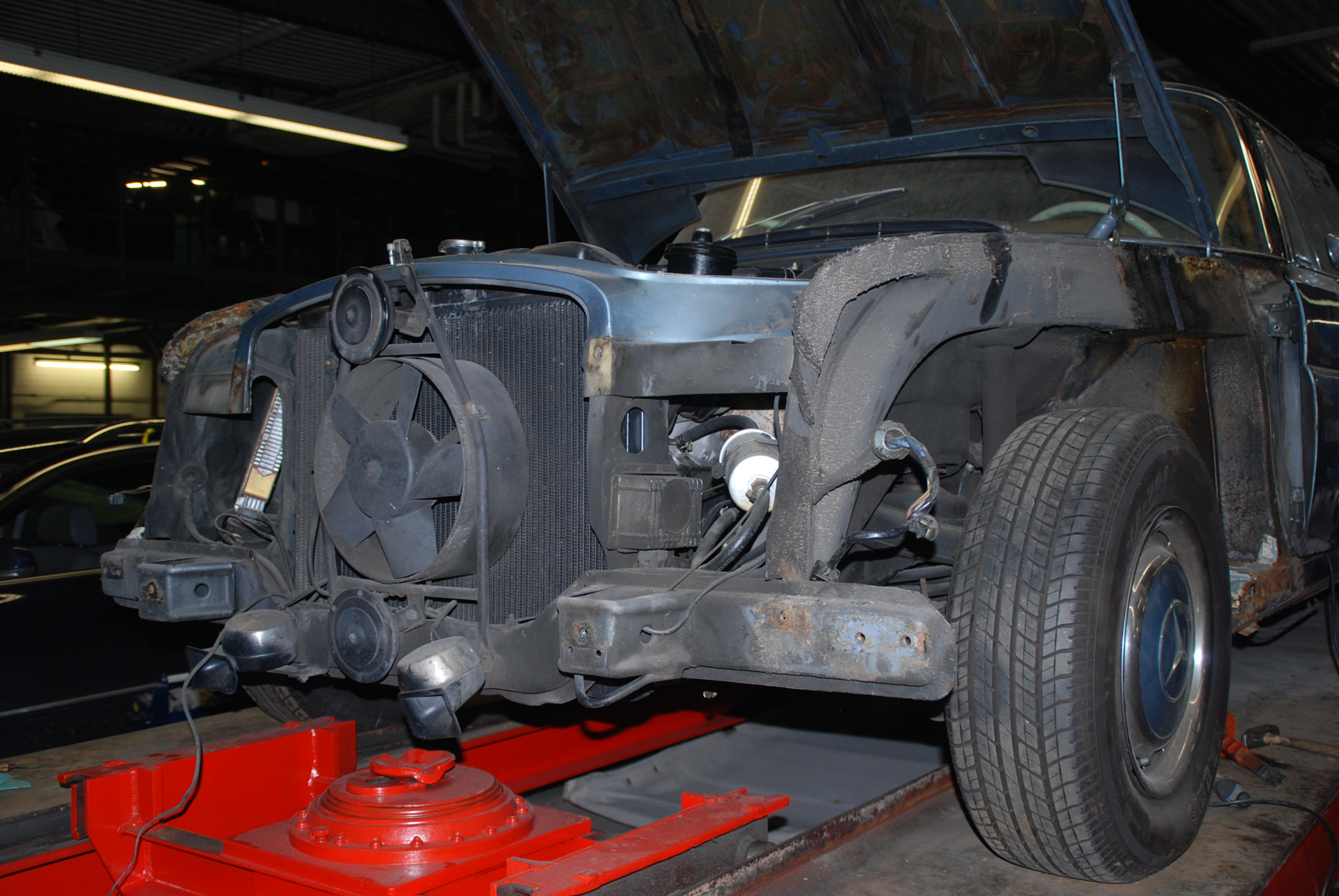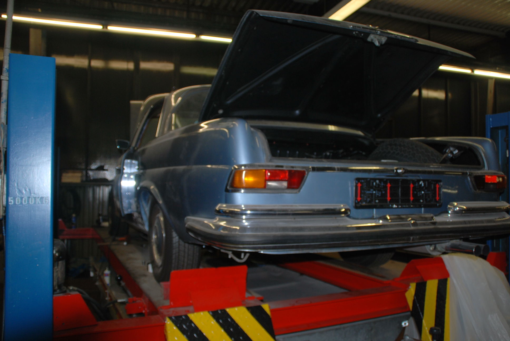 Hier sehen Sie Bilder einer kompletten Restauration eines Mercedes-Benz W111 in unserer Werkstatt: