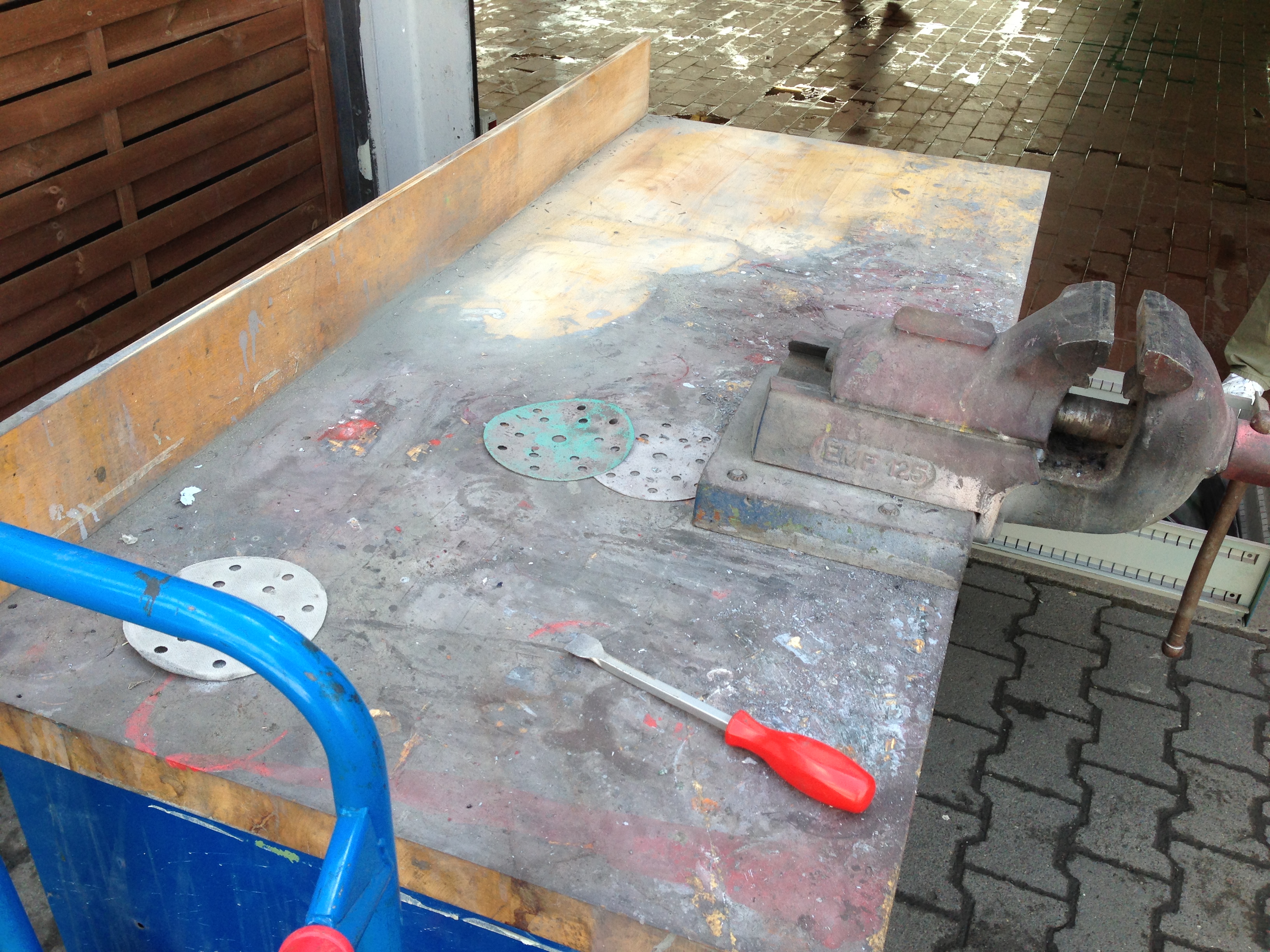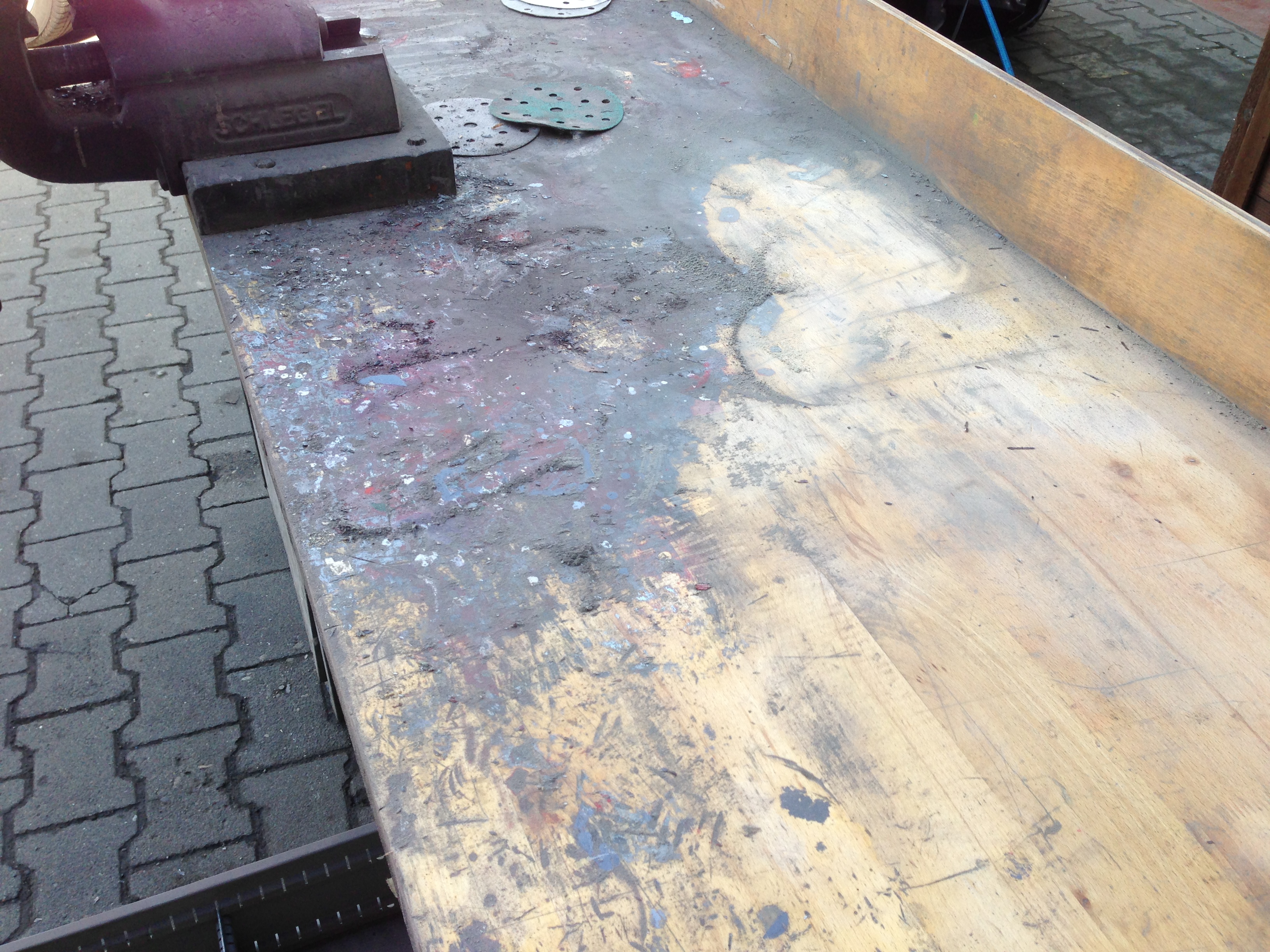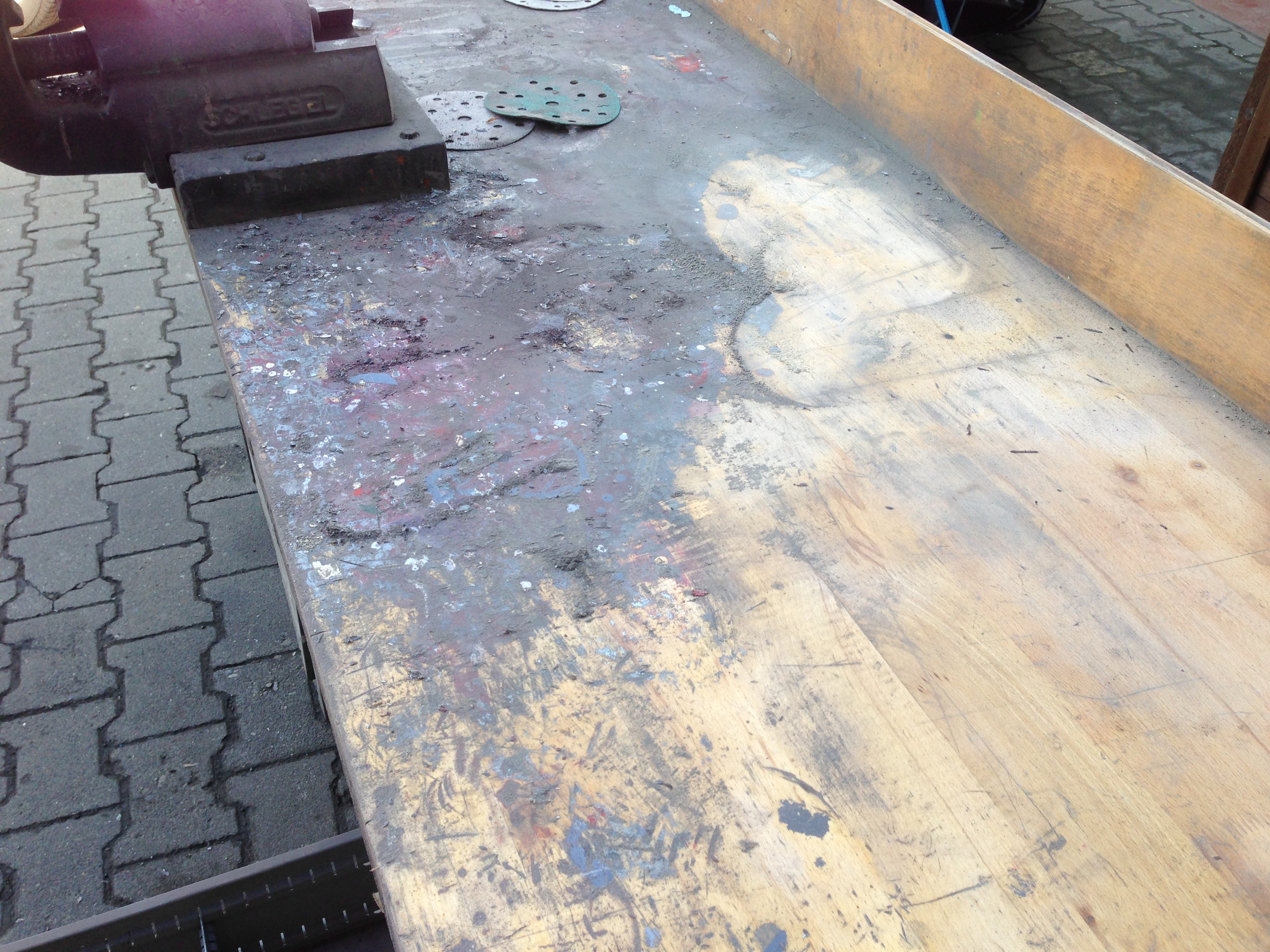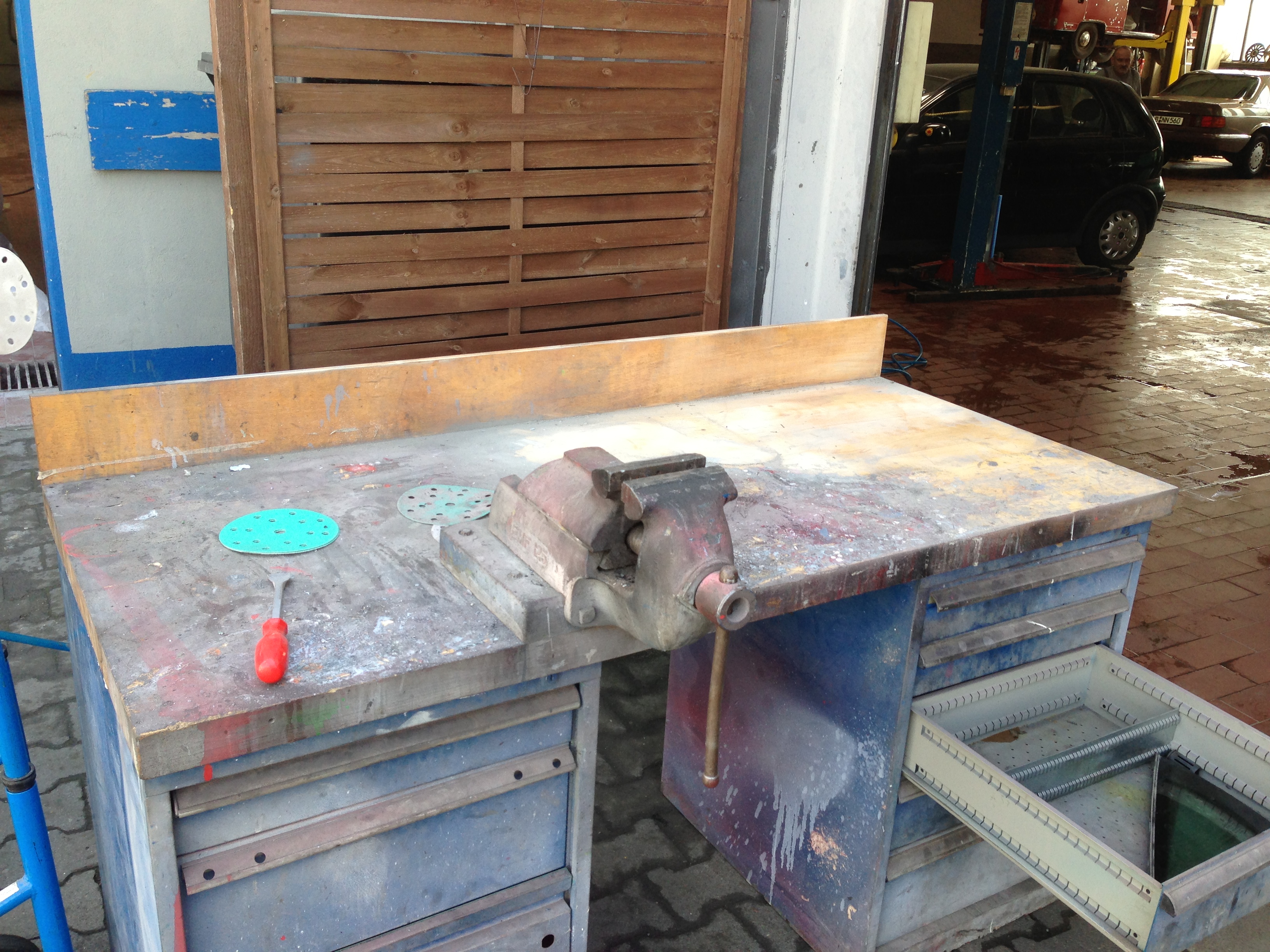 Ein lieber Kunde hat uns eine alte Werkbank geschenkt. Am Vatertag haben wir sie restauriert. Den Kasten Bier haben wir aus dem Bild geschoben. Es hat Spaß gemacht. Jetzt wollen alle eine solche Werkbank haben. Also, wenn Sie auch eine zu verschenken haben …