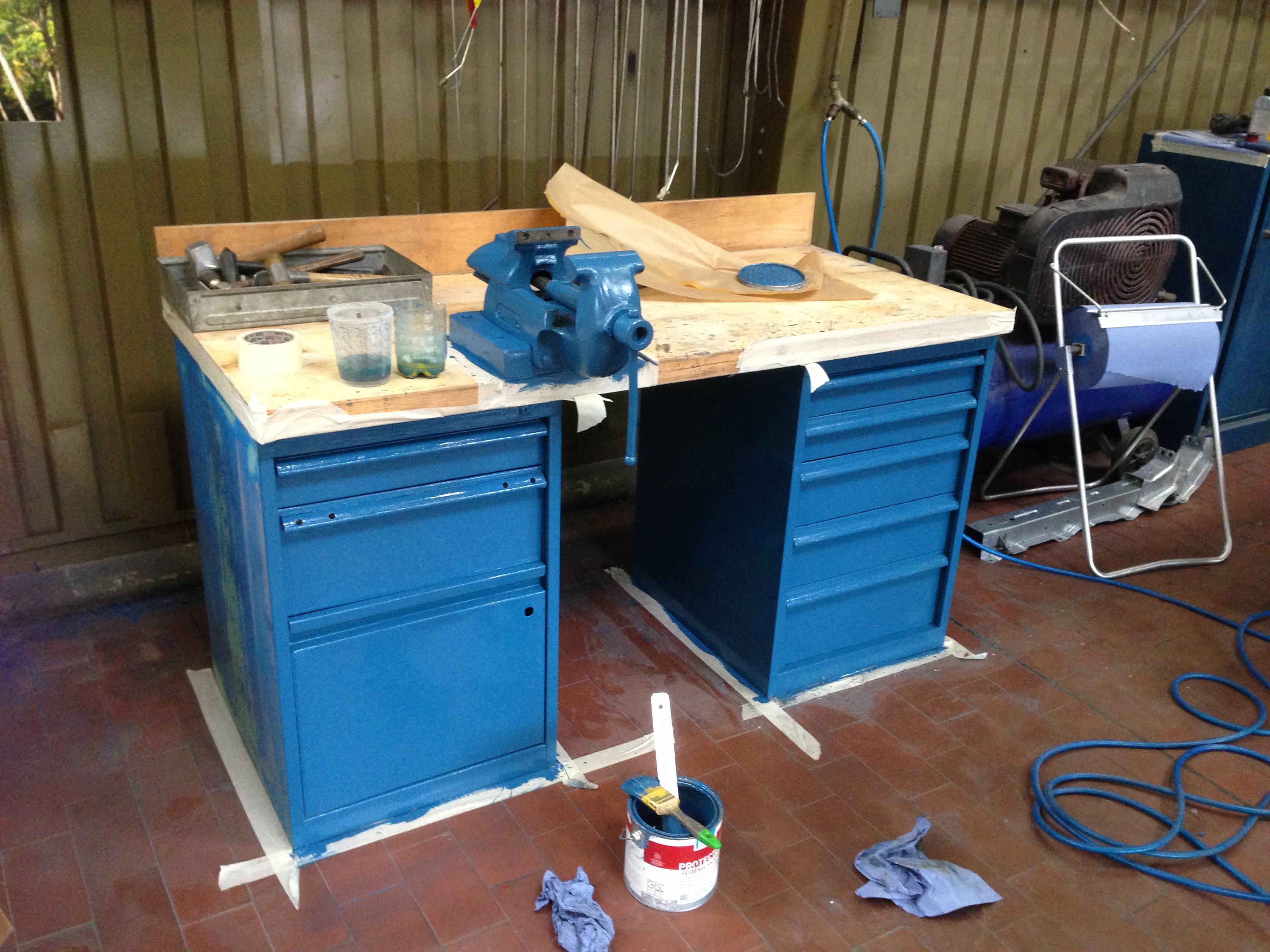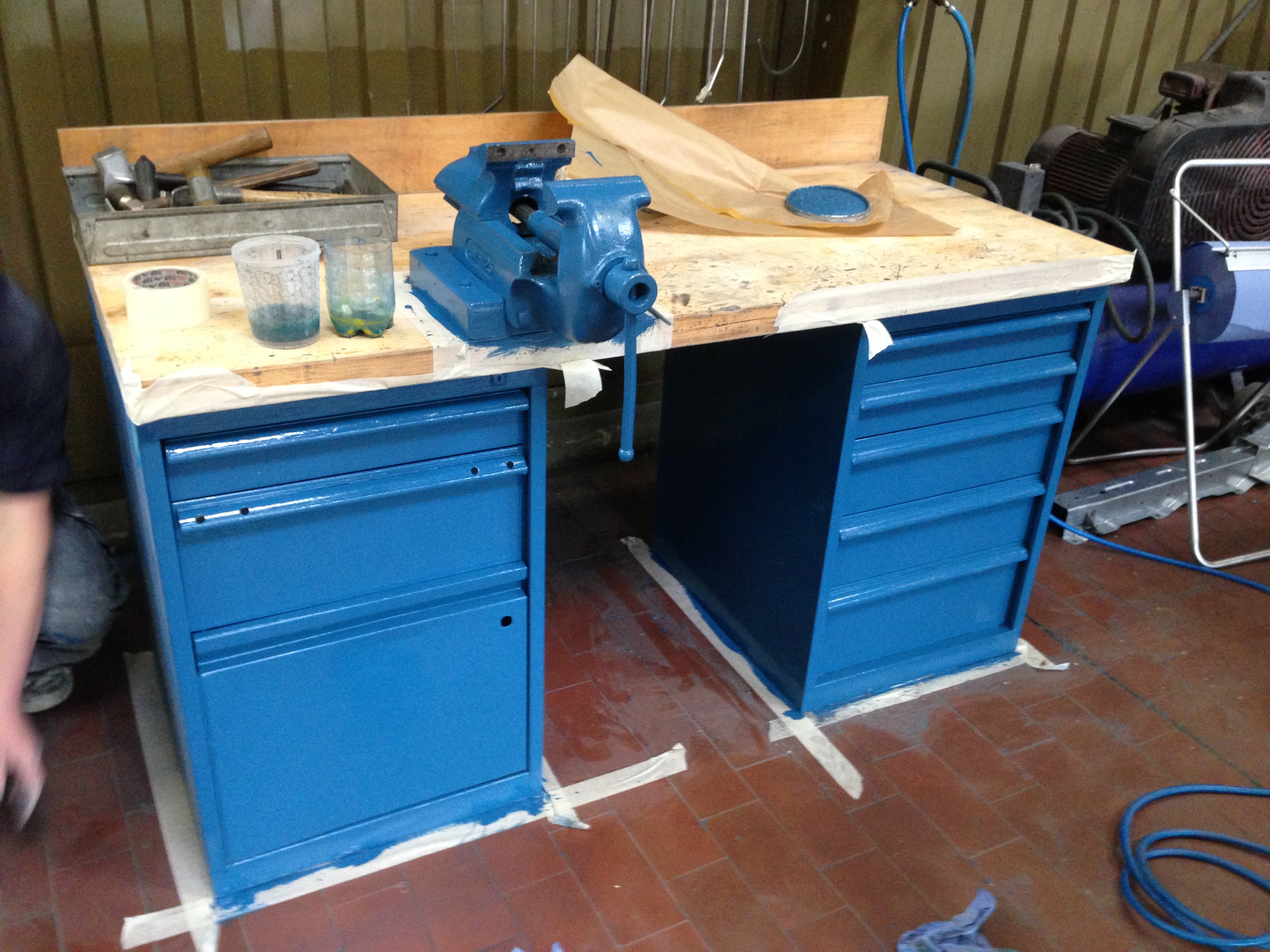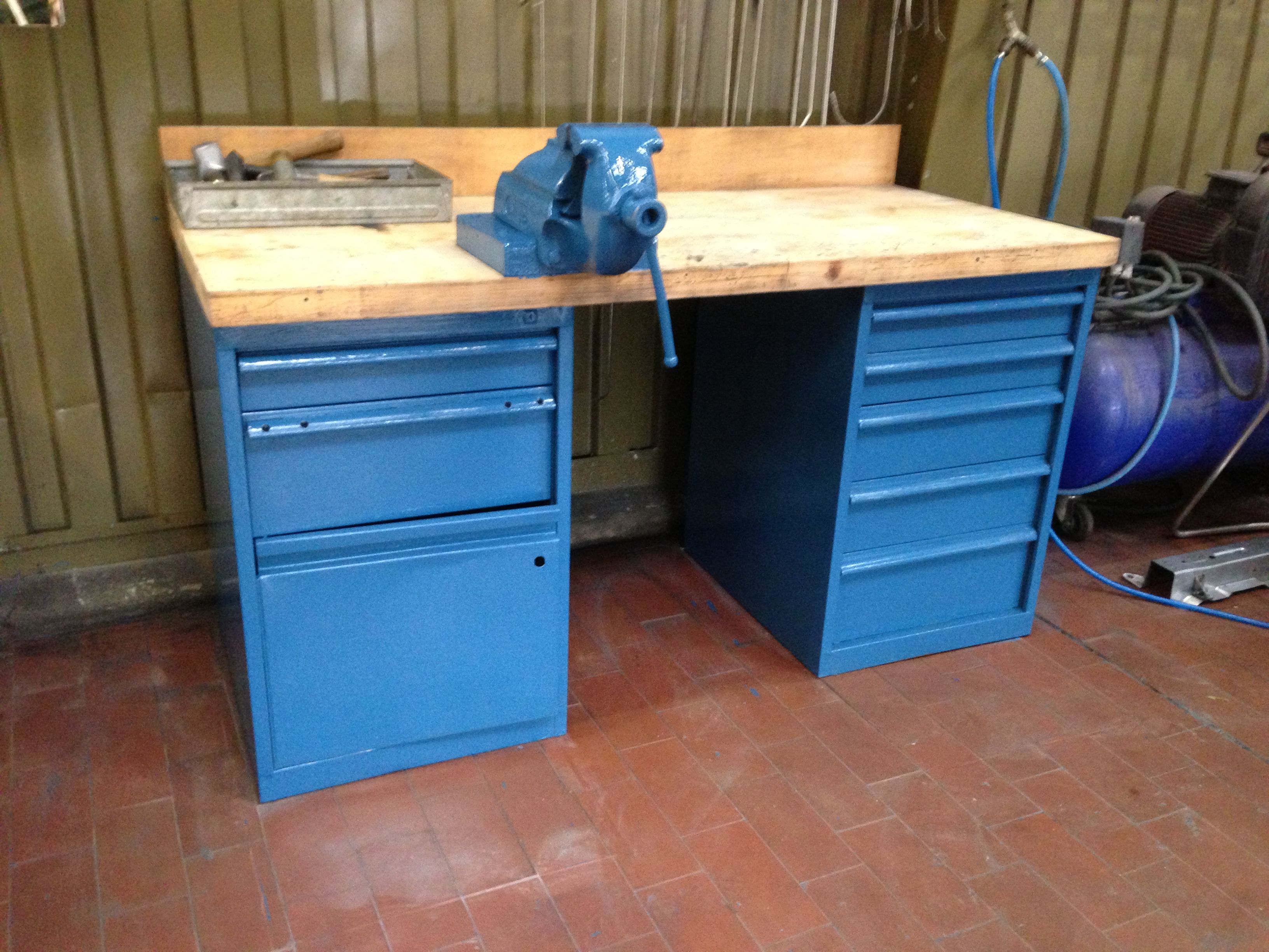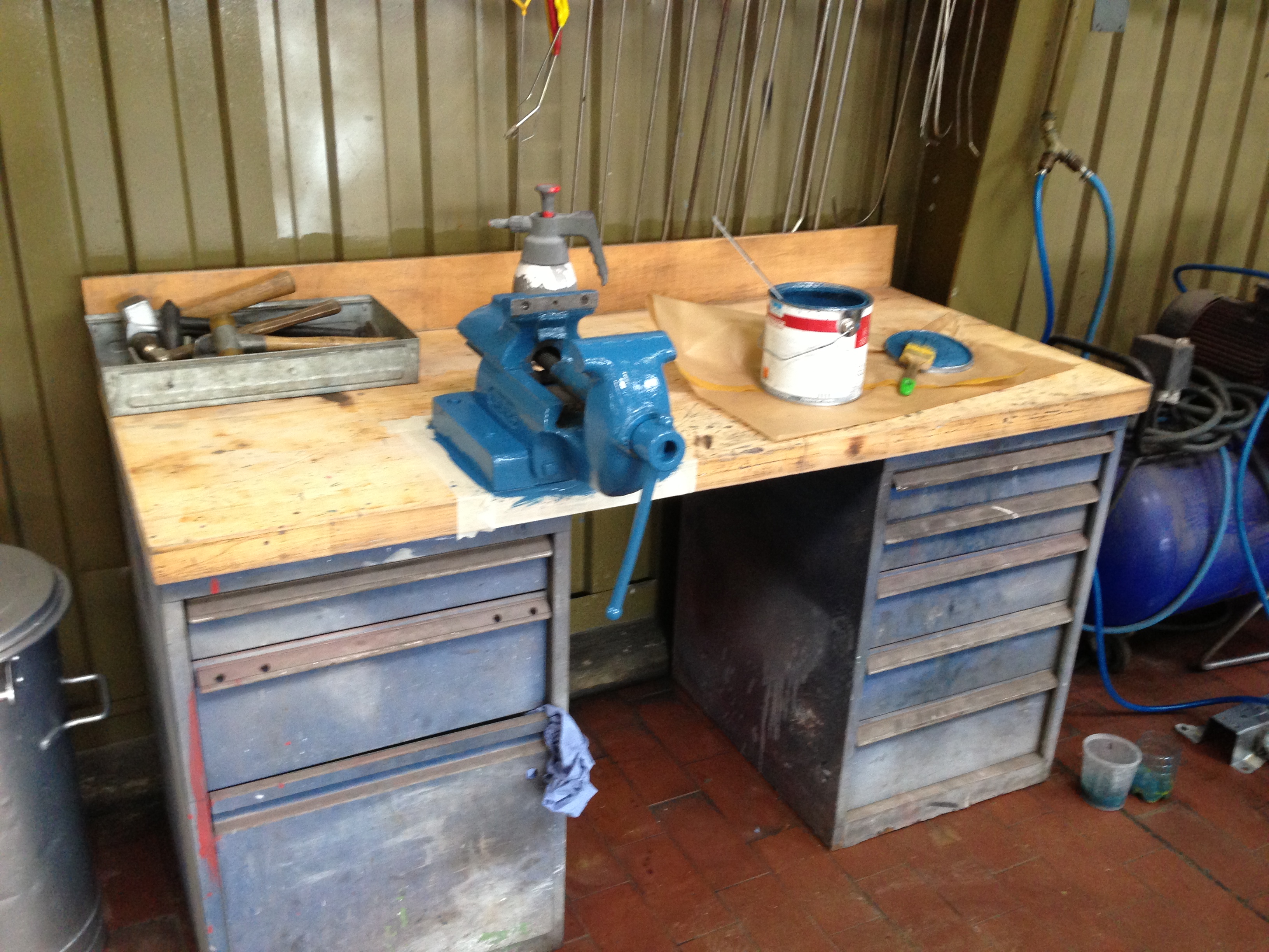 Ein lieber Kunde hat uns eine alte Werkbank geschenkt. Am Vatertag haben wir sie restauriert. Den Kasten Bier haben wir aus dem Bild geschoben. Es hat Spaß gemacht. Jetzt wollen alle eine solche Werkbank haben. Also, wenn Sie auch eine zu verschenken haben …